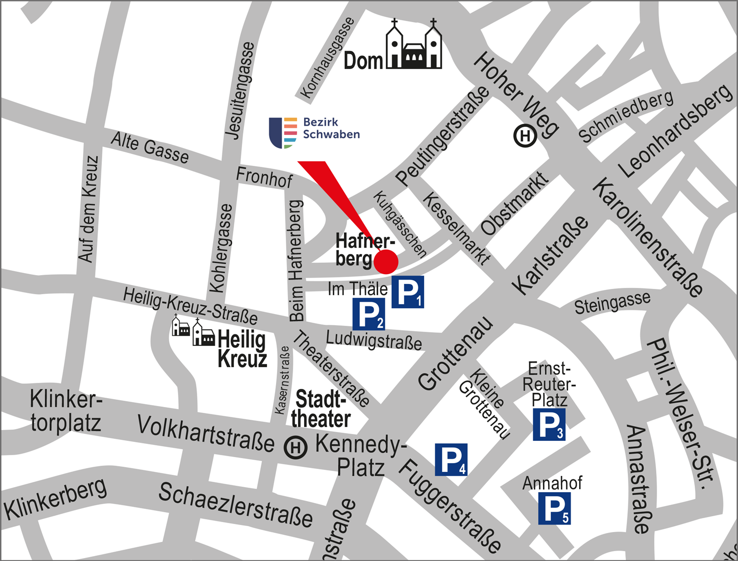 Lageplan: Gebäude des Bezirks Schwaben in Augsburg