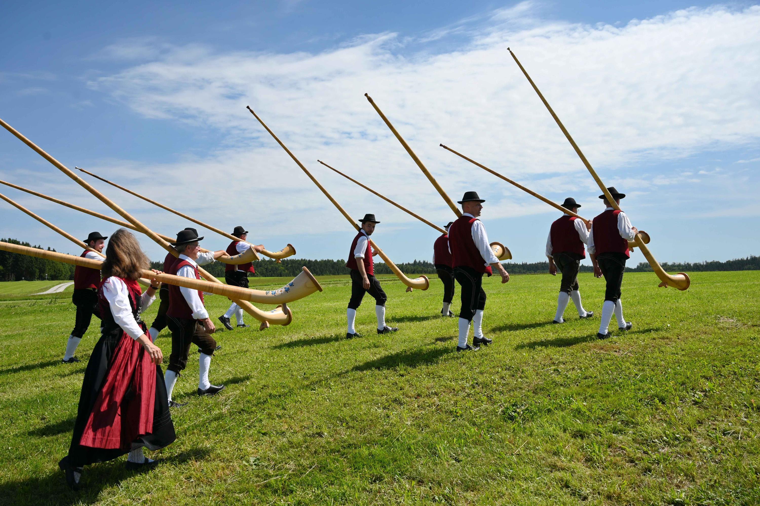 Ihre Größe ist beeindruckend, ihr Klang unverwechselbar – Alphörner ragen in vielerlei Hinsicht heraus. Franz Schüssele ist Sammler, Musiker und Alphorn-Spezialist. Er besitzt mehr als 100 Natur- und Alphörner und damit eine der weltweit größten Privatsammlungen dieser Blasinstrumente. Ganz besondere Exponate – vom fast vier Meter langen Schweizer Alphorn über ein tibetisches Dung Cheng bis zum australischen Didgeridoo – sind vom 10. Mai bis 1. November im Museum Hammerschmiede und Stockerhof Naichen in der neuen Ausstellung „Der Ruf der Berge. Alphörner & Co.“ zu sehen.