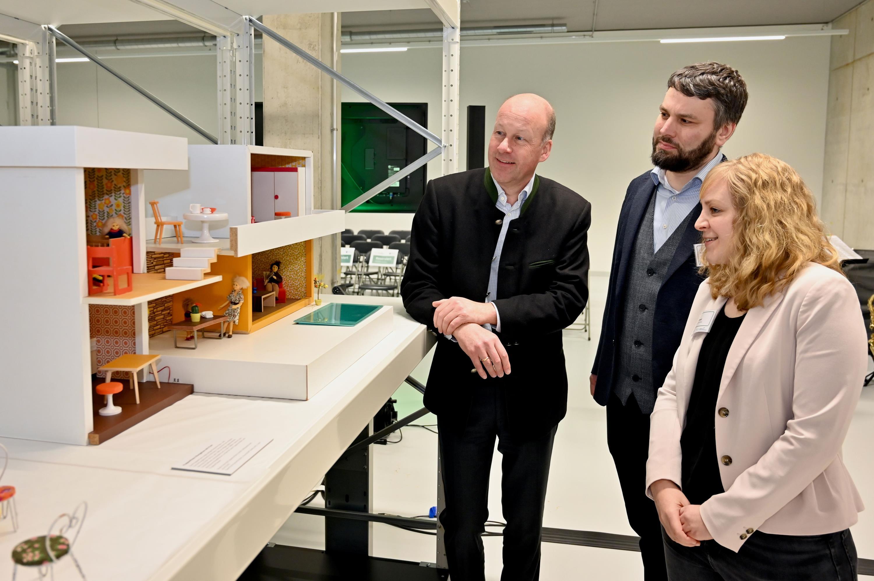 Sammeln, bewahren und forschen – das gehört zu den Kernaufgaben eines jeden Museums. Dem Museum Oberschönenfeld ist das ab sofort mit seinem neuen Sammlungszentrum unter einem Dach möglich. Am 15. Februar eröffneten Bezirkstagspräsident Martin Sailer, Museumsleiter Simon Kotter und Sammlungsleiterin Dr. Eva Bendl das neue Gebäude auf dem Weiherhof. „Mit dem Bau des Sammlungszentrums leistet der Bezirk einen wertvollen und nachhaltigen Beitrag zur Bewahrung des kulturellen Erbes unserer Region“, sagt Bezirkstagspräsident Martin Sailer bei der Eröffnung. Zusammen mit dem Kunst_Raum Weiherhof schafft der Bezirk damit einen neuen Ort der Kultur im Landkreis Augsburg.