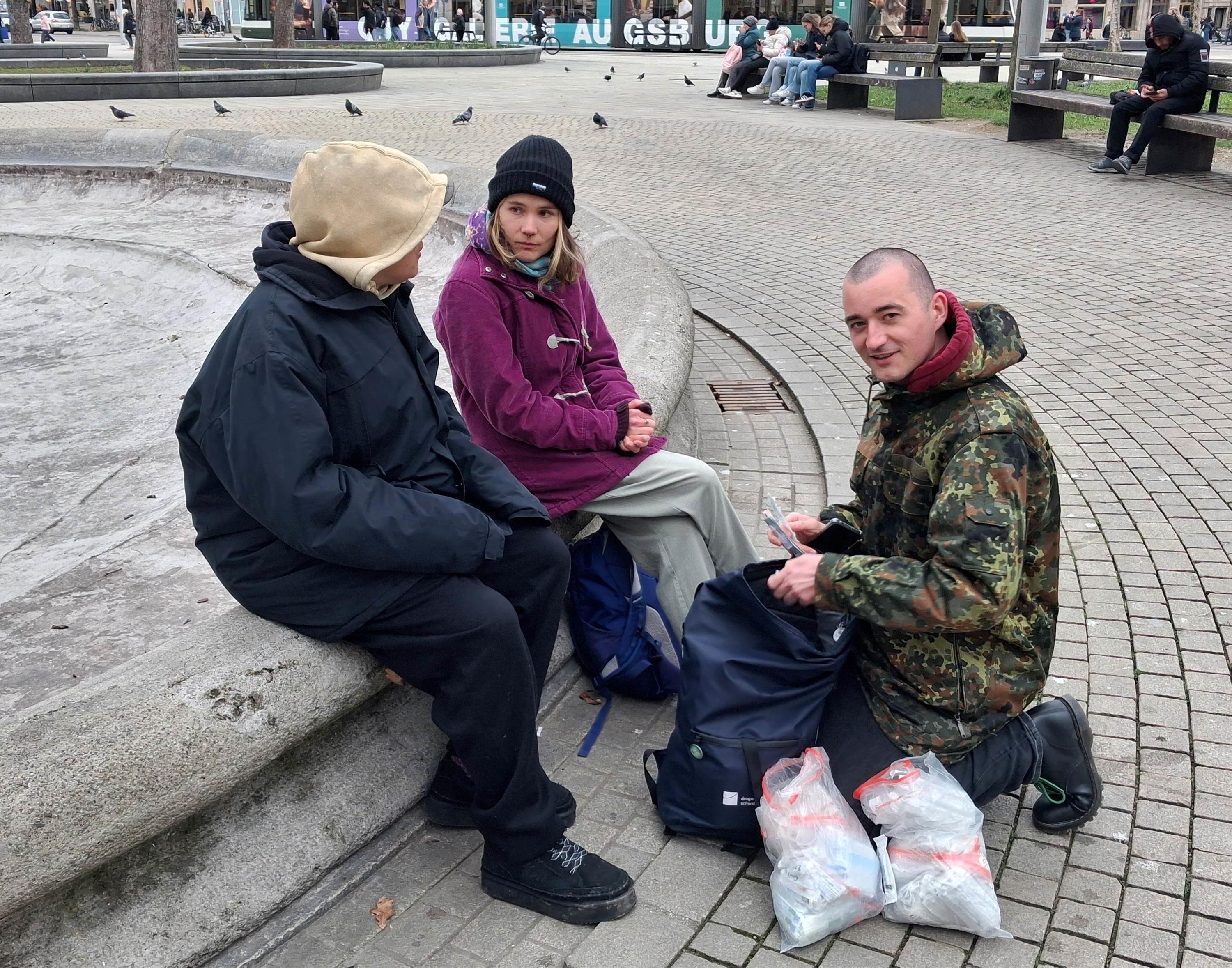 Seit Projektstart sind vier statt zuvor zwei Mitarbeitende im Bereich Streetwork tätig. Sie arbeiten vorrangig am Königsplatz, am Hauptbahnhof sowie am Helmut-Haller-Platz in Oberhausen. Sie suchen die Konsumentinnen und Konsumenten auf der Straße und an einschlägigen Plätzen auf und bauen Vertrauen auf. Ziel ist es, diese an Hilfsangebote heranzuführen und langfristig beim Ausstieg aus der Abhängigkeit zu unterstützen.